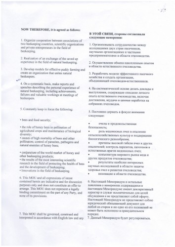 Во время пребывания нашей делегации на 45 Международном Пчеловодческом конгрессе Апимондии, который проходил в этом году в Стамбуле, Между ОО "Кыргызский Союз Пчеловодов" и "Ассоциацией пчеловодов Узбекистана" был подписан Меморандум о сотрудничестве.